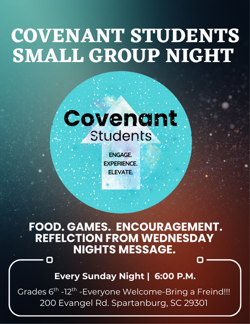 At Covenant Students we believe middle and high school students are not just the future of the church—they are a vital part of the church right now. This is a place where students can be real, ask honest questions, and discover what it means to follow Jesus in everyday life.